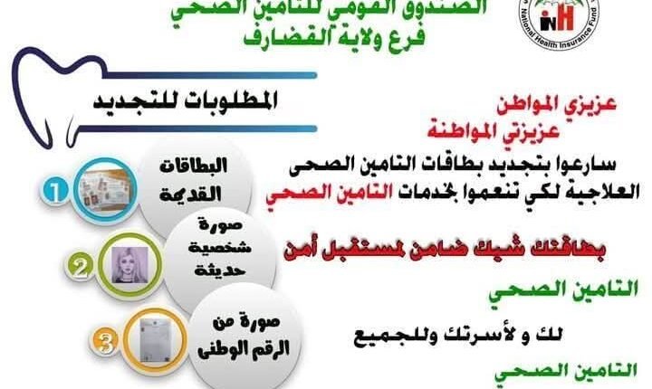 التأمين الصحي بالقضارف يدعو المواطنين لتجديد البطاقات