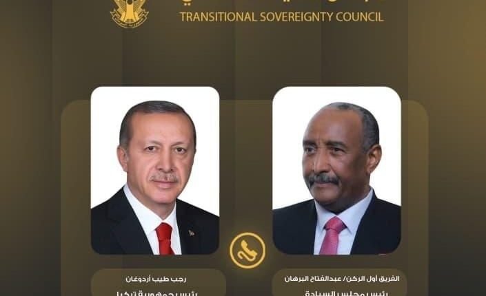 من جانبه، أعرب الرئيس التركي رجب طيب أردوغان عن شكره وتقديره لرئيس مجلس السيادة على الاتصال، مثمناً موقف السودان المتضامن مع تركيا عقب الهجمات الأخيرة.